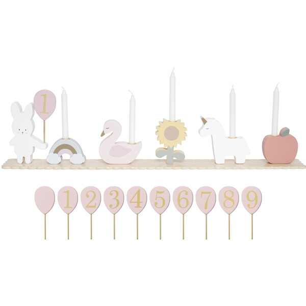 Enthält: 1x Bunny, 1x Regenbogen mit Kerzenhalter, 1x Schwan mit Kerzenhalter, 1x Sonnenblume mit Kerzenhalter, 1x Einhorn mit Kerzenhalter, 1x Apfel mit Kerzenhalter.