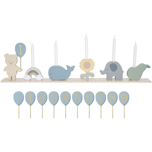 Enthält: 1x Teddy, 1x Regenbogen mit Kerzenhalter, 1x Wal mit Kerzenhalter, 1x Sonnenblume mit Kerzenhalter, 1x Elefant mit Kerzenhalter, 1x Birne mit Kerzenhalter.