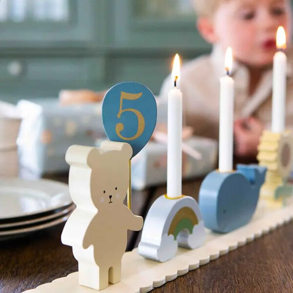 Jeder Zug ist mit niedlichen Figuren gefüllt – alle bereit, den Geburtstag Ihres Kleinen zu feiern. Mit sanften, verspielten Farben und schönen Holzelementen ist dieser Geburtstagszug nicht nur eine Dekoration, sondern auch eine geliebte Tradition, die Jahr für Jahr verwendet werden kann. Lassen Sie den Geburtstagszug Teil der Familientraditionen werden und schaffen Sie magische Momente, wenn die Figuren Reihe für Reihe für die Feier aufgestellt werden. Mit Teddy und seinen Freunden wird dieser Geburtstagszug zum herrlichen Mittelpunkt auf dem Geburtstagstisch.