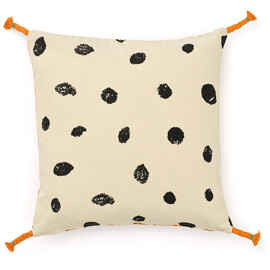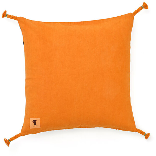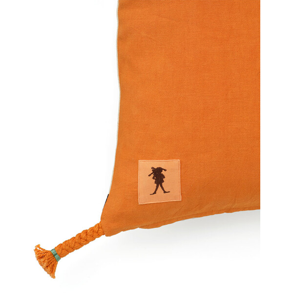 Dieses Kissenbezug ist inspiriert von Pippis markantem Stil und bringt ein verspieltes Element in den Raum. Die Vorderseite hat ein gepunktetes Muster, das an Pippis geliebtes Pferd erinnert, während die Rückseite eine warme, gebrannte orange Farbe hat – eine Hommage an Pippis unwiderstehliches rotes Haar. Jede Ecke ist mit einem geflochtenen Detail verziert, das zur Rückseite des Bezugs passt und ihre ikonische Frisur widerspiegelt. Der Bezug ist für ein Innenkissen von 50x50 cm (nicht enthalten) ausgelegt und hat einen Reißverschluss für einfaches Abnehmen.