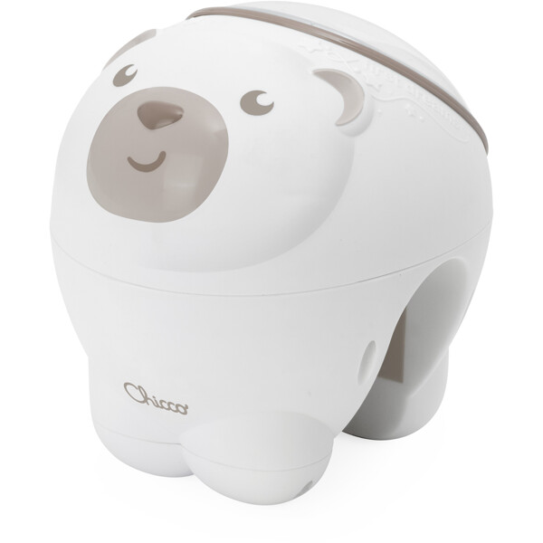 Ein süßer Eisbärenprojektor für das Kinderbett und den Nachttisch mit magischer und dynamischer Nordlichtprojektion, die eine wunderbare Atmosphäre für die Ruhe des Kindes schafft.