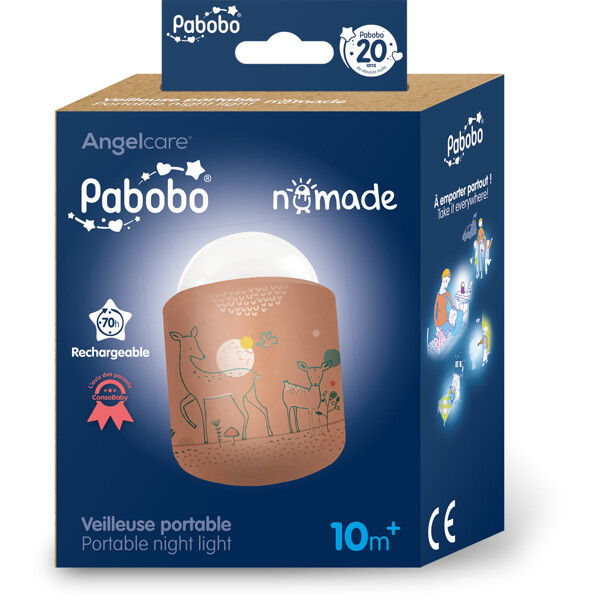 Pabobo Nomade Nachtlicht ist das erste tragbare Nachtlicht ohne Kabel oder Batterien, speziell für Kinder entwickelt. Mit seinem sanften Licht wacht es über die Kleinen, ohne sie zu wecken. Eine LED-Lampe, die nicht heiß wird und eine lange Leuchtdauer hat.Dank seines leichten und kompakten Designs liegt das Pabobo Nomade Nachtlicht gut in der Hand, sodass größere Kinder im Dunkeln ihren Weg finden können, ohne ihre Eltern zu wecken. Das Nachtlicht kann entweder in der Steckdose verwendet werden oder in das Lampengehäuse eingesetzt werden, sodass es leicht transportiert werden kann. Das Kind kann die Lampe sogar mit ins Bett nehmen. Da es sich um eine LED-Lampe handelt, wird sie nicht heiß.Die LED-Lampe leuchtet bis zu 70 Stunden zwischen den Ladevorgängen, und das vollständige Aufladen dauert etwa 5 Stunden in der Steckdose. Die Lampe ist mit einem Lichtsensor und einem automatischen Ein-/Ausschaltmodus ausgestattet. Eine gute Lampe sowohl für zu Hause als auch für Reisen.Eigenschaften:Ab 0 Monaten (mit der Lampe im Gehäuse)Lange Leuchtdauer, bis zu 70 StundenVollständig aufgeladen in 5 StundenLichtsensor mit automatischem Ein-/AusschaltenKlein und tragbar, wiegt 70 gLED-Lampe, wird nicht heißPasst in alle Steckdosen2 Jahre Garantie!