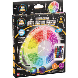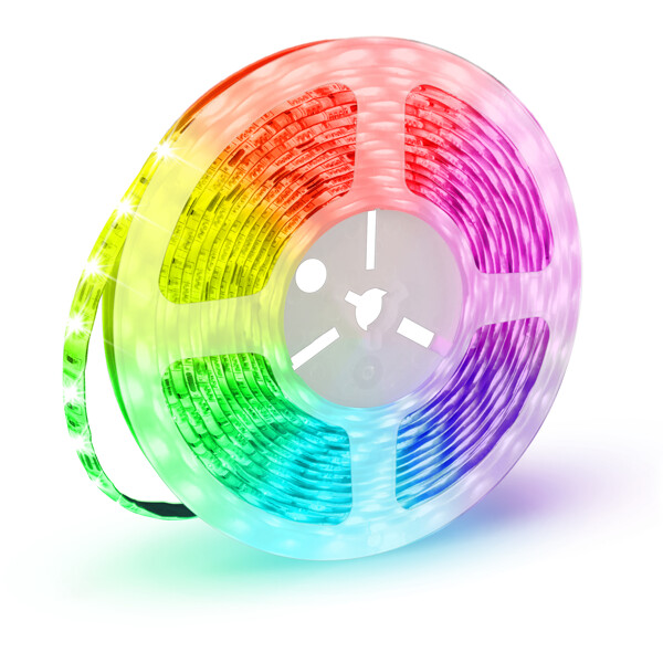 Eine LED-Lichterkette von 5 Metern (kann kürzer geschnitten werden), die mit einer Fernbedienung gesteuert wird.