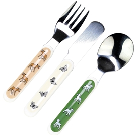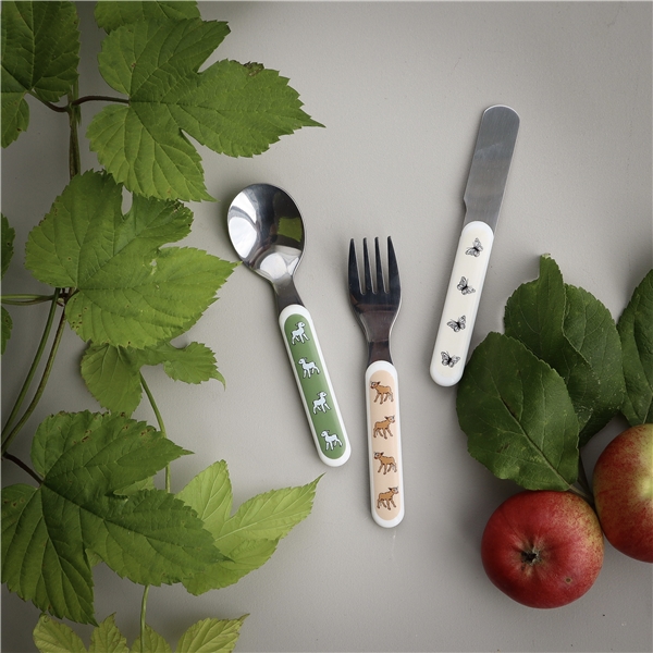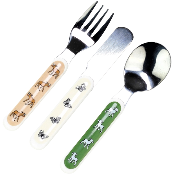 Barnen i Bullerbyn Kinderbesteck 3er-Pack sind robuste Kinderbestecke aus ABS-Kunststoff und Edelstahl. Messer, Gabel und Löffel, die für kleine Hände und Münder geeignet sind. Wird in einer schönen und praktischen Geschenkbox geliefert.