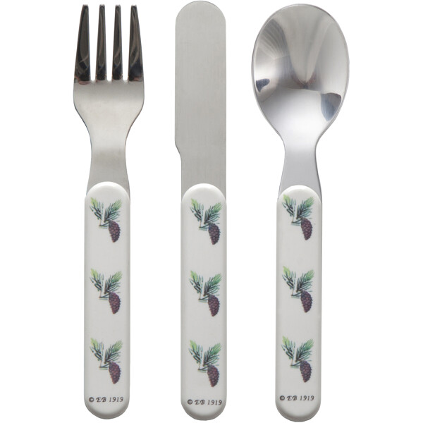 Robustes Kinderbesteck aus ABS-Kunststoff und rostfreiem Stahl. Messer, Gabel und Löffel, die für kleine Hände und Münder geeignet sind. Wird in einer schönen und praktischen Geschenkbox geliefert.
