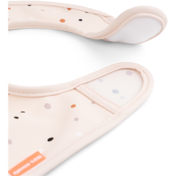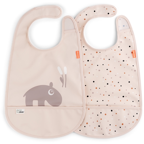 Bereiten Sie sich darauf vor, die Mahlzeit weniger klebrig zu machen mit diesem praktischen Set aus zwei wasserdichten Klettverschluss-Lätzchen, die leicht abzuwischen sind und eine clevere Tasche haben, um das Essen aufzufangen, das den Mund verfehlt. Die weichen Lätzchen haben einen Klettverschluss, der das An- und Ausziehen der Lätzchen sehr einfach macht. Das eine Lätzchen ist mit einem Tier dekoriert und das andere ist mit Happy Dots in sanften Farben bedeckt.