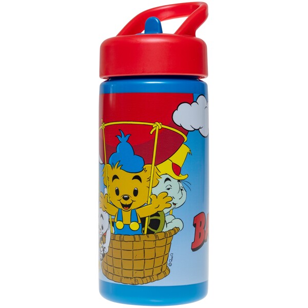 Bamse Wasserflasche ist eine praktische Wasserflasche, die das Kind tagsüber mitnehmen kann, um den Durst zu stillen. Die Wasserflasche ist blau mit einem Aufdruck von Bamse und seinen Freunden, die im Heißluftballon fliegen. Im Deckel befindet sich ein Trinkhalm, der geöffnet und geschlossen werden kann, mit einem praktischen Griff, an dem das Kind die Flasche tragen kann.