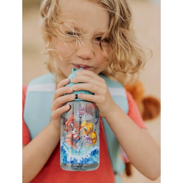 Halten Sie den Flüssigkeitshaushalt auf eine lustige und praktische Weise mit dieser Musse & Helium-Wasserflasche aufrecht. Die Flasche ist aus strapazierfähigem Kunststoff gefertigt und verfügt über einen praktischen Trinkhalm mit Flip-Lock, der ein einfaches Trinken ohne Verschütten ermöglicht.Das farbenfrohe Design mit Illustrationen von Musse und Helium macht die Flasche besonders spaßig in der Anwendung, sowohl zu Hause als auch unterwegs. Mit dem praktischen Trageriemen lässt sie sich jeden Tag einfach mitnehmen.