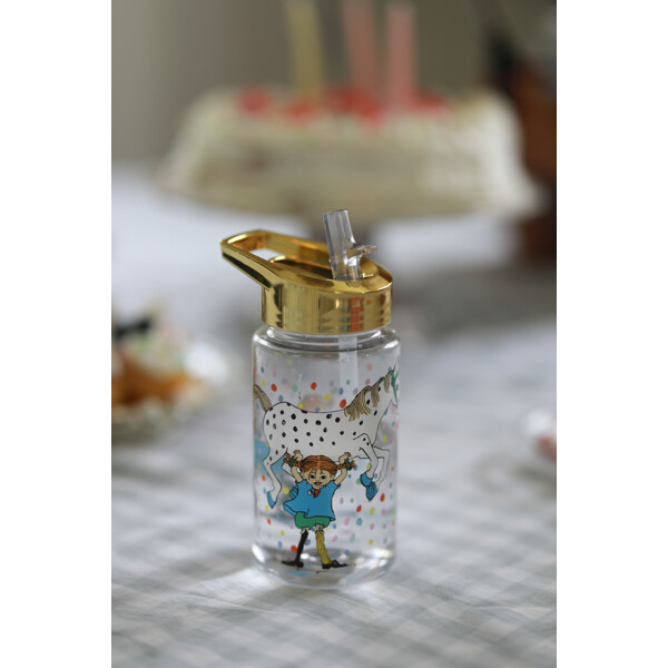 Wasserflasche aus strapazierfähigem BPA-freiem Kunststoff mit einem wunderbaren Motiv aus den Büchern über Pippi Langstrumpf.