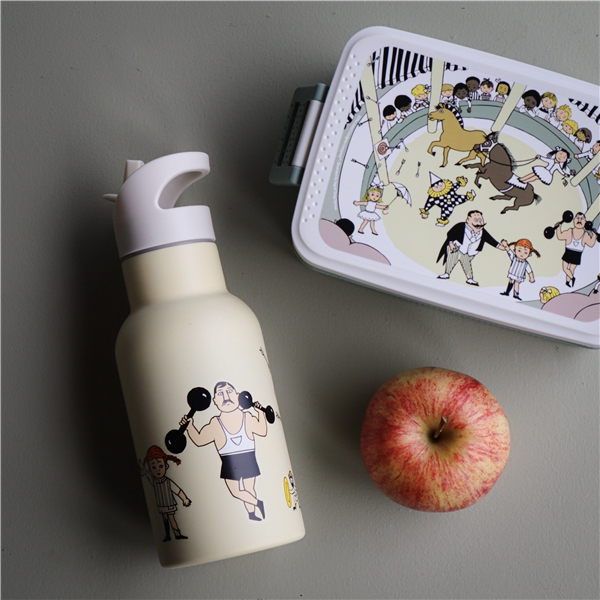 Flasche aus hochwertigem Stahl mit Pippi Langstrumpf! Die Flasche hat eine Thermofunktion, die dafür sorgt, dass Flüssigkeiten für eine kurze Zeit sowohl warm als auch kalt bleiben können. Im Inneren der Flasche befindet sich ein abnehmbarer Trinkhalm aus Kunststoff, der dafür sorgt, dass beim Trinken die richtige Menge herauskommt. Die Flasche ist einfach zu öffnen und zu schließen.Sicherheit: Der Trinkstutzen der Flasche ist nicht zum Kauen oder Beißen gedacht. Die Flasche kann von kleinen Kindern benutzt werden, jedoch nur unter der vollen Aufsicht eines Erwachsenen.