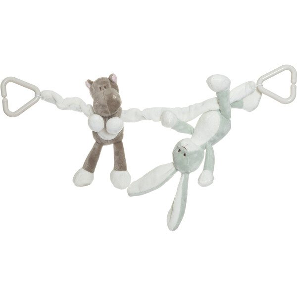 Diinglisar Kinderwagenanhänger mit Nilpferd und Kaninchen ist ein bezauberndes Detail für den Kinderwagen. Sowohl das Nilpferd als auch das Kaninchen sind als dazugehörige Schmusetücher erhältlich.
