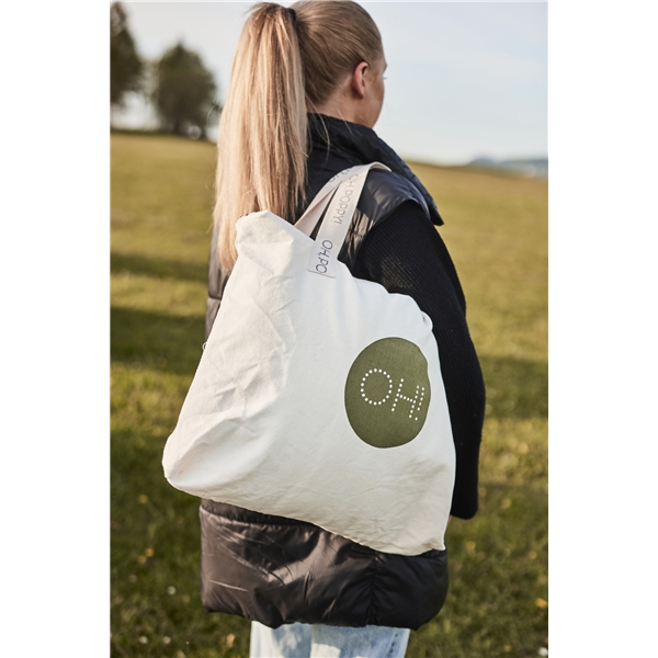 Wird in einer schicken Stofftasche geliefert, die zum Beispiel als Einkaufs- oder Sporttasche wiederverwendet werden kann.