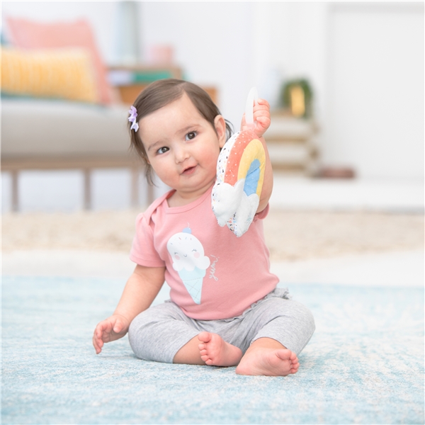Skip Hop ABC&Me Regenbogen Kinderwagen-Spielzeug ist ein süßer Regenbogen, der sowohl zu Hause als auch unterwegs passt. Der Regenbogen kann am Babysitz, Kinderbett, Autositz oder Kinderwagen befestigt werden, und das Kind kann sich von den Lichtern und der Musik faszinieren lassen. Der süße Regenbogen ist aus weichem Plüsch gefertigt und knistert und ist spannend, was das Kind erfreut und unterhält. In einer der Wolken des Regenbogens befindet sich ein Spielwerk, das das ABC-Lied spielt und gleichzeitig die Lichter des Regenbogens aufleuchten lässt.