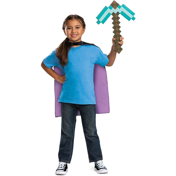 Das Set enthält ein pixeliertes Enderman-Cape aus Satin und eine Diamantspitzhacke, die 40 cm lang ist.Kombiniere das Set mit einem T-Shirt und einer Hose, und du bist bereit, dich auf deine Baureise zu begeben!