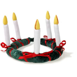 Die Größe des Kranzes wird mit Klettverschluss angepasst. Der Kranz ist 50 cm groß, der Klettverschluss ist maximal ca. 12 cm (6+6 cm, wenn man ihn so groß wie möglich macht). Die Flamme sieht etwas anders aus als auf dem Bild, es sind die gleichen Farben, aber in Filz genäht.