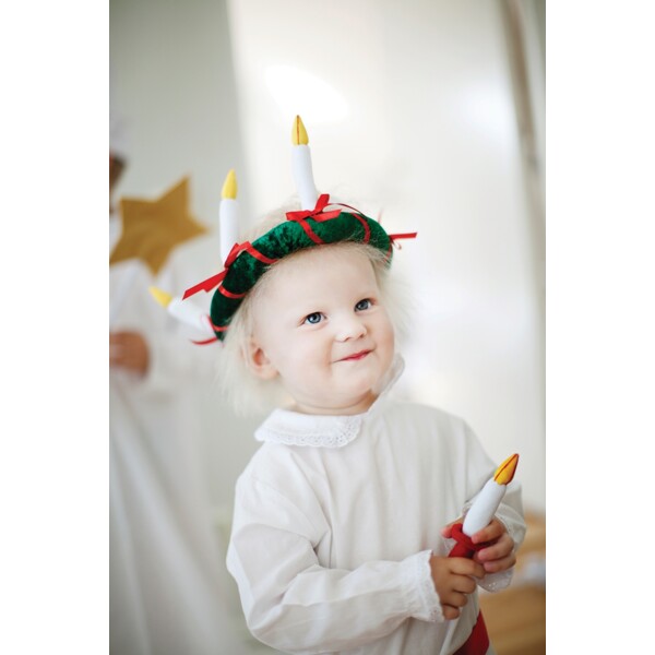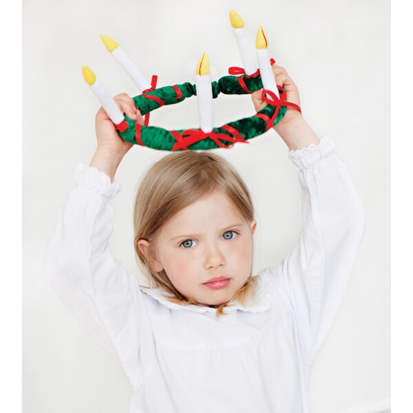 Ein süßer, weicher Lucia-Kranz von Oskar & Ellen, der perfekt für die Kleinen ist, er drückt nicht und leuchtet die ganze Zeit.