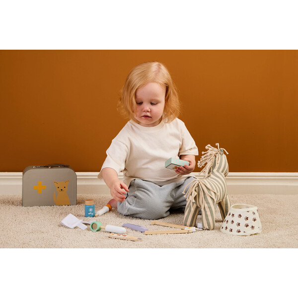 Das Set ermutigt Kinder, in die Rolle des Tierarztes zu schlüpfen und gibt ihnen die Möglichkeit, Pflege und Verantwortung zu erkunden, während sie sich in kreativen Spielen mit ihren Tieren engagieren.