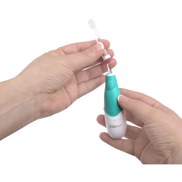 bblüv Ultraschall-Elektrische Zahnbürste 0 Monate+ ist eine elektrische Zahnbürste, die sanft zu den Kindern ist. Mit ihren sanften Vibrationen massiert sie das Zahnfleisch, während die weiche Zahnbürste die Zähne und das Zahnfleisch sanft und gründlich reinigt.