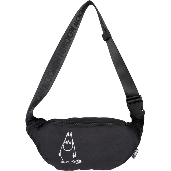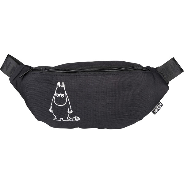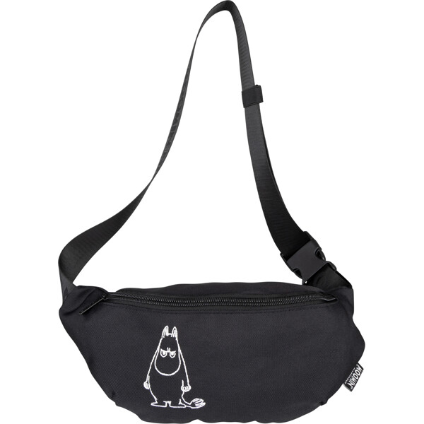 Eine praktische Mumin-Gürteltasche aus robustem Polyester. Oben hat die Tasche einen Reißverschluss und innen gibt es eine kleine Tasche mit Reißverschluss. Mit verstellbarem Hüftgurt.