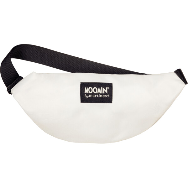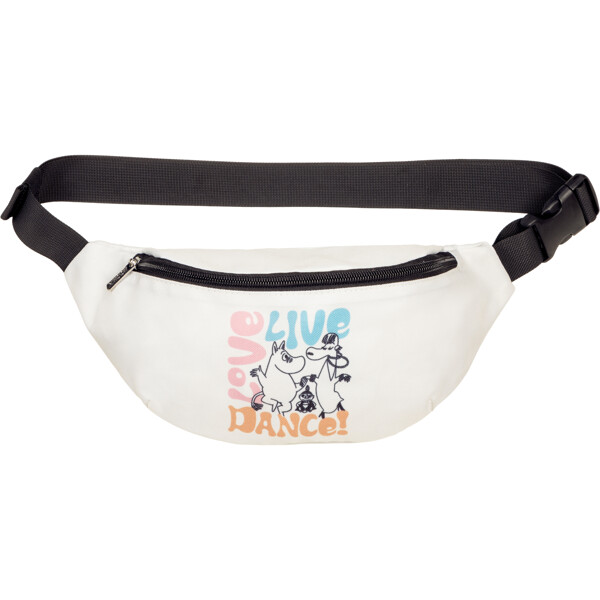 Eine praktische Mumin-Gürteltasche aus robustem Polyester. Die Tasche hat einen verstellbaren Hüftgurt und einen Reißverschluss oben.