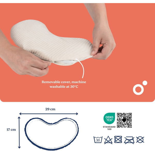 Doomoo Linderndes Kühl- & Wärmekissen mit Raps ist ein bogenförmiges Kissen, das speziell entwickelt wurde, um Schmerzen und Unbehagen zu lindern – von der Schwangerschaft bis zum Stillen und der Erholung. Die Form ist sorgfältig an den Körper der Frau angepasst und kann einfach über Bereichen wie Gebärmutter, Lendenwirbelsäule, Nacken oder schmerzenden Brüsten platziert werden.Das Kissen enthält ein herausnehmbares Wärmekissen, das mit natürlichen Rapssamen gefüllt ist, was eine gleichmäßige und angenehme Verteilung von Wärme oder Kälte ermöglicht – ganz ohne Chemikalien.Vorteile und Anwendungsbereiche:Während der Schwangerschaft: lindert Muskelverspannungen und Schmerzen im Lendenbereich oder BeckenBeim Stillen:Wärme: stimuliert die Milchproduktion und lindert MilchstauKälte: lindert schmerzende oder geschwollene Brüste, Blutergüsse und EntzündungenFlexible Anwendung: kann über Gebärmutter, Brust, Nacken oder Rücken platziert werdenNatürliche Füllung: enthält Rapssamen, die Wärme und Kälte effektiv haltenErgonomische Bogenform: angepasst an den Körper der FrauAnwendung des Produkts:Für kalte Anwendung: Legen Sie das Innenkissen in einen verschlossenen Plastikbeutel und frieren Sie es mindestens 2 Stunden einFür warme Anwendung: Erwärmen Sie das Kissen vorsichtig gemäß den beiliegenden Anweisungen (z.B. in der Mikrowelle)