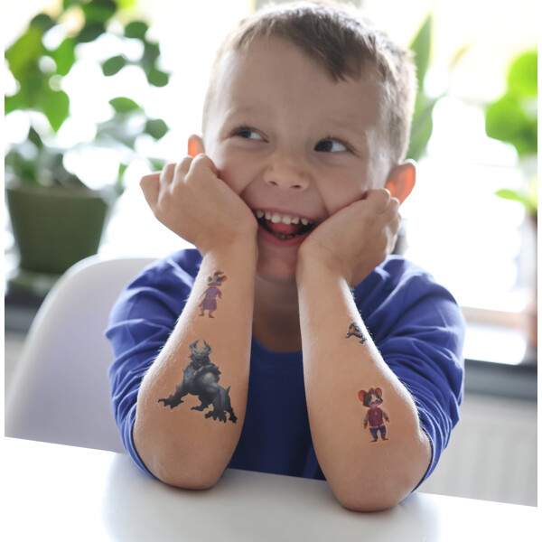 Sichere und lustige Kindertattoos von Musse & Helium! Das Set enthält 2 Bögen mit 40 temporären Kindertattoos. Einfach mit Wasser anfeuchten und auf die Haut auftragen - super einfach und jede Menge Spaß!