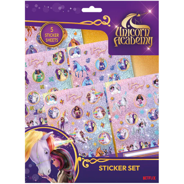 Unicorn Academy Sticker-Set mit 5 x 20 Aufklebern = insgesamt 100 Aufkleber.