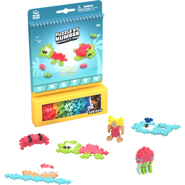 Plus-Plus Activity Pads machen die Reise oder den Nachmittag zu einem lustigen Abenteuer. Jede Seite bietet ein neues Projekt zum Erkunden, sowohl in 2D als auch in 3D. Mit der cleveren Puzzle By Number-Technik in 2D erhält jede Farbe eine Nummer – eine unterhaltsame und logische Methode für das Kind, das Motiv zusammenzusetzen. Für die 3D-Ideen gibt es einfache Schritt-für-Schritt-Anleitungen, die das Zusammenbauen der Figur erleichtern. Jedes Activity Pad enthält 125 Plus-Plus-Teile, die ordentlich in einer kleinen Box aufbewahrt werden, die am Block befestigt ist.