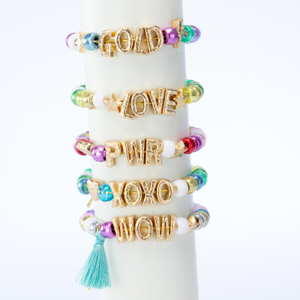 Kreiere deine eigenen einzigartigen Halsketten und Armbänder für dich und deine Freunde. Enthält über 300 Perlen, 50+ goldfarbene Buchstabenperlen, 6 Metalldekorationen, Bänder und über 7 m elastische Schnur.