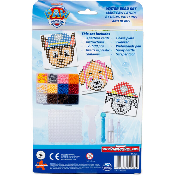 Mit diesen runden Perlen können Kinder drei verschiedene PAW Patrol-Charaktere gestalten. Die Kinder legen die Perlen auf die Platte, besprühen sie mit Wasser, warten eine Stunde und lösen das Kunstwerk ab. Keine Hitze oder Bügeleisen erforderlich, nur ein wenig Kreativität und Energie! Jetzt können Kinder die Perlenplatten ganz alleine legen. Die Wasserperlen sind sowohl sicher als auch einfach zu verwenden. Eine großartige Geschenkidee für kleine Bastelliebhaber!