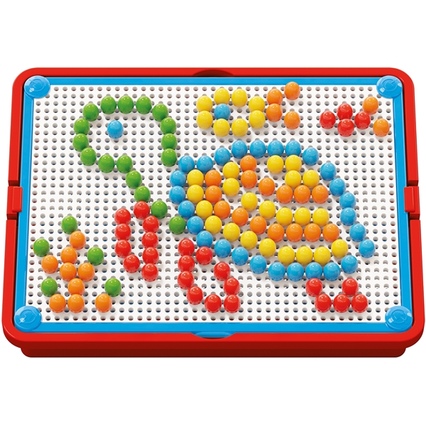 Pegart Tafel Tasche 150 Stück Pegs ist ein fantastisches Starterset, um Kunst mit Pegs zu schaffen! Erstellen Sie wunderschöne Mosaikbilder, indem Sie „Pegs“ in die Tafel stecken. Es ist eine lustige, kreative und pädagogische Aktivität, die Kinder dazu ermutigt, etwas über Farben zu lernen, die Feinmotorik und die Hand-Auge-Koordination zu entwickeln. Dies ist ein nahezu unzerstörbares und sicheres Spielzeug – alle Teile sind aus hochwertigem Kunststoff mit abgerundeten Kanten gefertigt und können bei Bedarf auch abgewaschen werden! Die Tafel hat einen Griff, damit Sie sie einfach überallhin mitnehmen können.