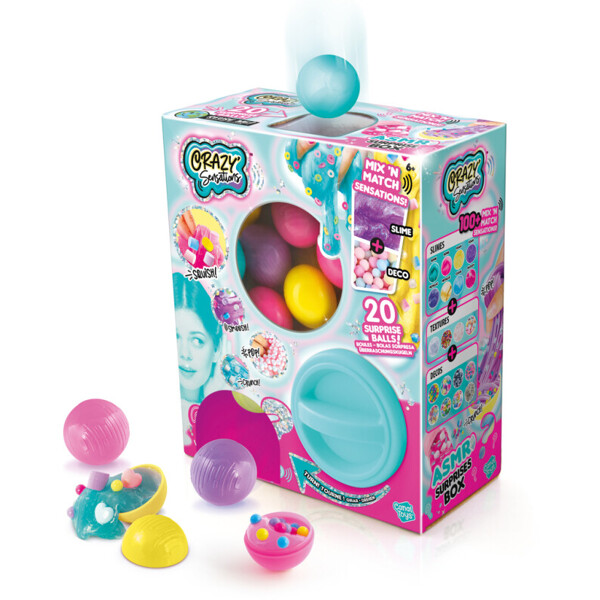 Spielen Sie mit 20 Bällen und erleben Sie Schleim mit einzigartigen Texturen und Dekorationstypen für das ultimative ASMR-sensorische Erlebnis. Die Box ist wiederverwendbar.