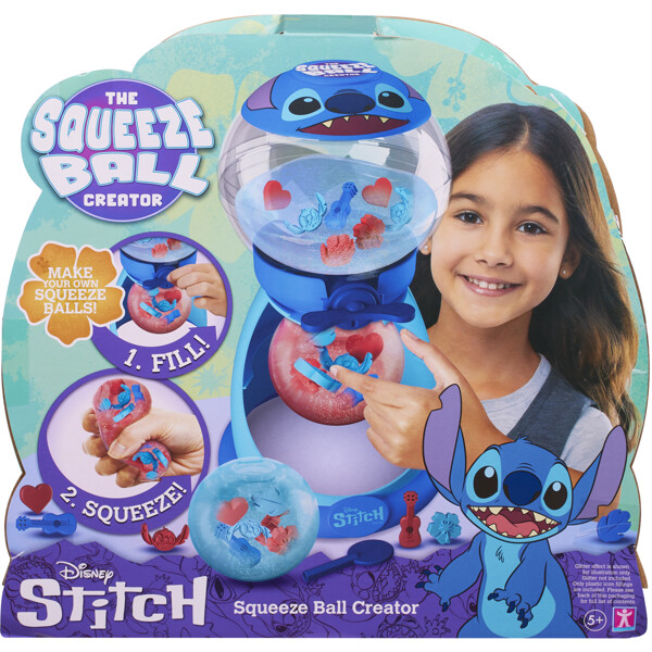 Jetzt kannst du deine ganz eigenen einzigartigen Quetschbälle mit dem fantastischen Disney Stitch Squeeze Ball Creator erstellen! Enthält alles, was du brauchst, um drei wiederverwendbare Quetschbälle zu machen – mischen, füllen, verschließen und quetschen! So einfach, so spaßig!Der Disney Stitch Squeeze Ball Creator wird mit 21 supercoolen wiederverwendbaren Ikonen im Disney Stitch-Design geliefert, die du in deine Quetschbälle legen kannst, um fantastische Designs zu kreieren! Fülle sie mit Ikonen, um deine Quetschbälle anzupassen und einzigartige Muster zu erstellen. Oder warum nicht eigene Füllungen wie Schleim, Pompons oder Pailletten verwenden? Die Möglichkeiten sind endlos! Nutze deine Fantasie und erschaffe deine eigenen quetschtastischen Kreationen!Mit dem Disney Stitch Squeeze Ball Creator erhältst du super sensorisches Spielvergnügen! Kinder, die ASMR-Spiele lieben, werden es lieben, ihre eigenen Quetschbälle zu kreieren und zu gestalten und dann Spaß daran haben, sie zu quetschen und zu dehnen. Verwende verschiedene Füllungen, um unterschiedliche Texturen zu schaffen – ein totales sensorisches Erlebnis! Perfekt für Kinder, die Fidget-Spielzeuge und die beruhigenden Effekte von Quetschbällen lieben.Der Disney Stitch Squeeze Ball Creator ist wiederverwendbar, was bedeutet, dass Kinder immer wieder fantastische Quetschbälle erstellen können! Spüle einfach deine Quetschbälle aus, bewahre die Ikonen auf und mache immer wieder neue squishy Kreationen. Die mitgelieferten Ikonen sind ebenfalls wiederverwendbar – mixe und kombiniere verschiedene Ikonen, um unterschiedliche Designs zu erstellen, oder fülle sie mit eigenen Füllungen! Mit dem Squeeze Ball Creator endet der Spielspaß nie!Inhalt:3 x Quetschbälle21 x Ikonen (zufällige Farben)1 x Squeeze Ball Creator1 x Kurbel1 x Anleitung