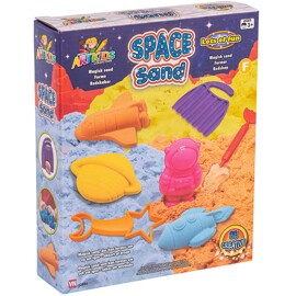 Artkids Space Magischer Sand ist ein Bastelset mit 3 Beuteln magischem Spielsand in verschiedenen Farben, Formen und Werkzeugen.