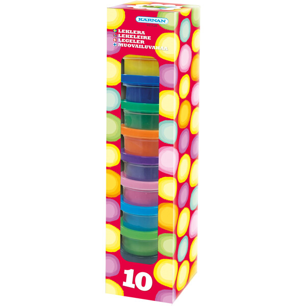 Kärnan Knetmasse 10 Dosen ist ein perfektes Geschenk zum Verschenken. Das Set enthält viele kleine Dosen für diejenigen, die mit verschiedenen Knetfarben basteln möchten.