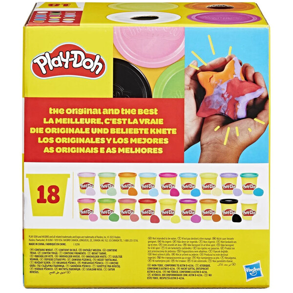 Entfesseln Sie die Kreativität Ihres Kindes mit dem Imagine Anything 18 Pack. Dieses Set enthält 18 Dosen Play-Doh Knetmasse, jede mit 56 g in kräftigen Farben. Die weiche, formbare Konsistenz und der klassische Play-Doh-Duft machen es zu einem perfekten sensorischen Spielzeug für Kinder ab 2 Jahren.
