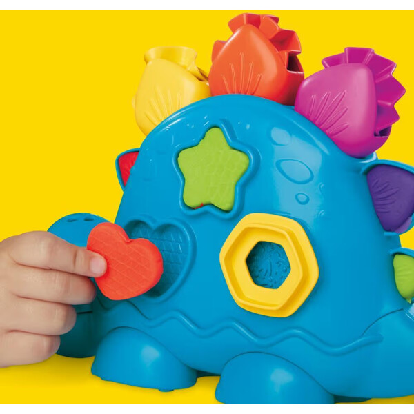Kinder können verschiedene Formen mit den mitgelieferten Play-Doh-Zubehörteilen schneiden und rollen, und der Dinosaurier bewahrt diese Werkzeuge sowohl innerhalb als auch außerhalb des Spielsets auf.