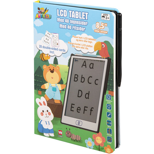 Ein schönes, kreatives Set mit einer 22 x 15 cm großen digitalen Tafel mit farbigem Hintergrund und 40 Seiten mit Zeichnungen, die du hinter dem Bildschirm einfügen und von denen du das Zeichnen lernen kannst. Zeichne mit dem mitgelieferten Stift und lösche alles wieder, indem du die Löschtaste drückst.