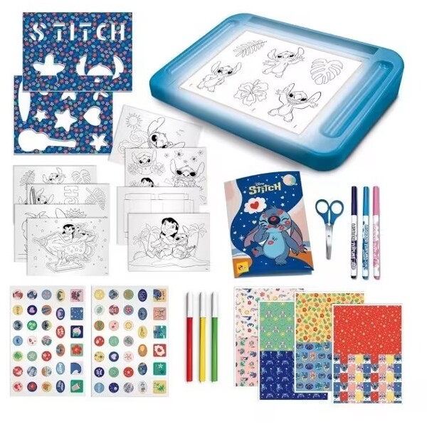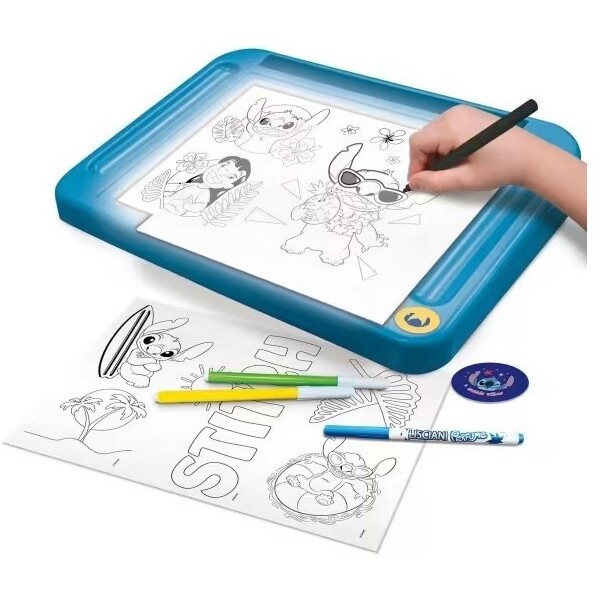 Mit dem Disney Stitch Light Table lernst du, deine Lieblingsfiguren aus Stitch zu zeichnen. Schalte den Leuchttisch ein, platziere dein gewähltes Motiv und ein leeres Blatt Papier darauf, zeichne die Konturen und male aus. Mit dem Set kannst du auch mehr als 10 kreative Kunst- und Bastelaktivitäten durchführen.