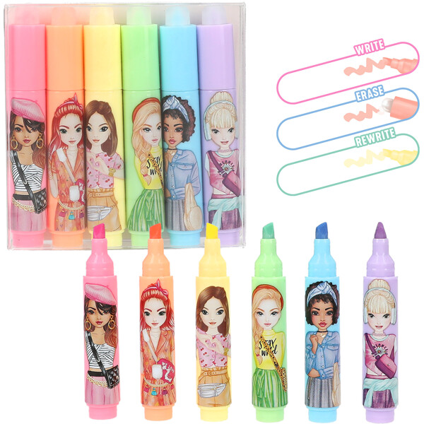 Markieren, radieren und erneut markieren! Mit diesen 6 Mini-Textmarkern von TOPModel kannst du Text einfach hervorheben und dann die Farbe mit dem runden Ende des Stifts wegradieren (wärmeempfindliche Farbe, die bei Reibung verschwindet, wenn sie erhitzt wird).