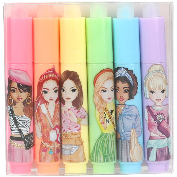 Enthält 6 verschiedene, schöne Pastellfarben: Rosa, Orange, Gelb, Blau, Grün und Lila. Alle Stifte haben schicke TOPModel-Drucke und können einfach zu einem oder mehreren größeren Stiften zusammengesteckt werden.
