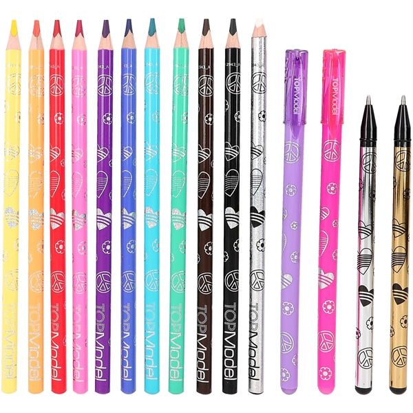Ein herrliches TOPModel Designbuch mit dazugehörigen Farbstiften! Male aus oder entwirf Kleidung für die TOPModel-Mädchen und lass dich von den verschiedenen Bildern inspirieren, Tipps und Ideen sammeln. In diesem Set sind 10 Holzfarbstifte, 1 Radierstift und 4 Gelstifte sowie 2 Bögen mit Aufklebern enthalten, um deinen schönen Kreationen einen zusätzlichen Touch zu verleihen.