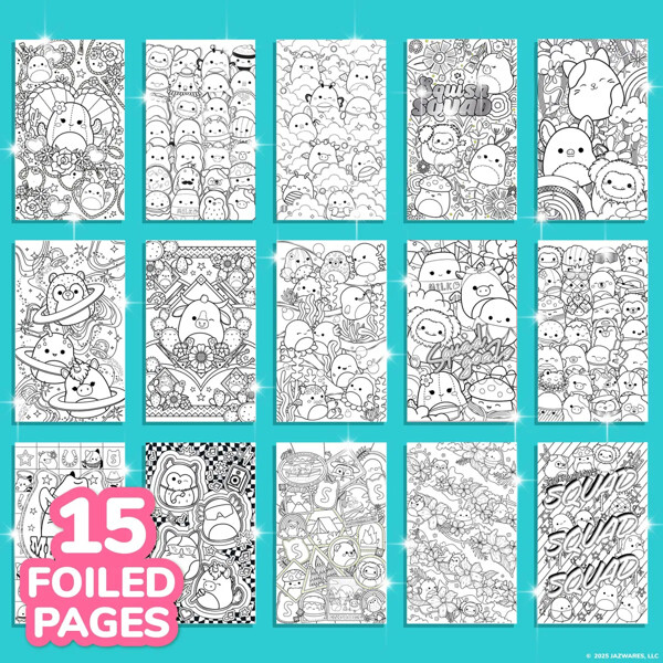 Es enthält 30 vorgedruckte Designs mit Ihren Lieblings-’Mallows — von einer epischen Squish-Reise ins All bis zu einem coolen Karaoke-Battle und sogar zusätzlichen Illustrationen mit Folie! Es gibt unendliche Möglichkeiten, sich zusammenzuschließen! Die obere Spiralbindung macht es einfach, durch die Seiten zu blättern oder sie herauszureißen und mit Freunden zu teilen — was möchten Sie zuerst ausmalen?