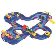 Eine lustige Wasserbahn mit Schleuse und Booten.