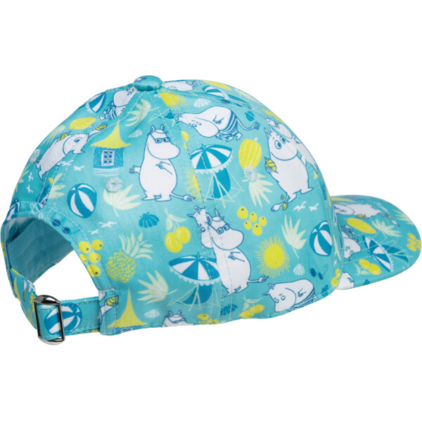 Eine klassische Mumin-Kappe für Kinder. Mit vorgebogenem Schirm, stabiler Vorderseite, gestickten Belüftungslöchern und einem verstellbaren Verschluss auf der Rückseite. Umweltfreundlich hergestellt aus recyceltem, GRS-zertifiziertem Polyester.