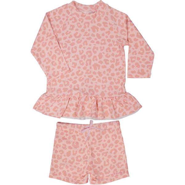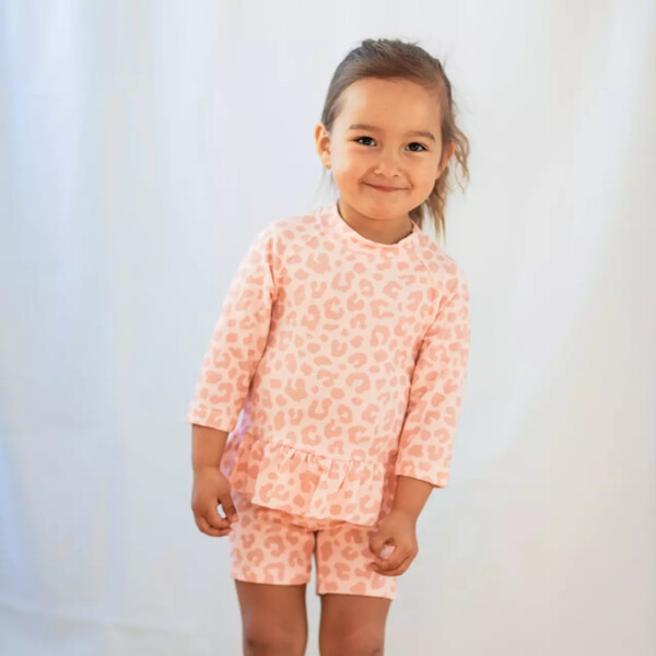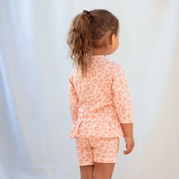 Rosa UV-Bade-Set mit kurzärmeligem Shirt und Shorts. Es ist aus einem schnelltrocknenden Material gefertigt, mit UV-50+, das 98% der schädlichen UVA- und UVB-Strahlen der Sonne blockiert. Ein großer Favorit bei Familien mit Kindern. Mit einem UV-Set schützt du dein Kind vor den starken Sonnenstrahlen. Das Shirt hat einen Reißverschluss vorne für einfaches An- und Ausziehen.