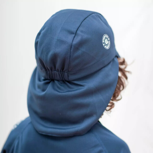 Der Sonnenhut hat eine breite Krempe, die Augen und Gesicht schützt, sowie einen langen Nackenschutz gegen die Sonnenstrahlen.