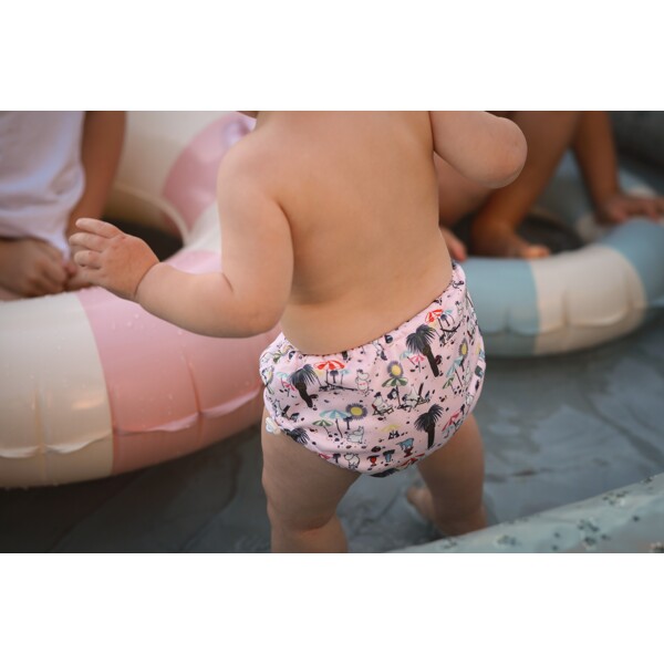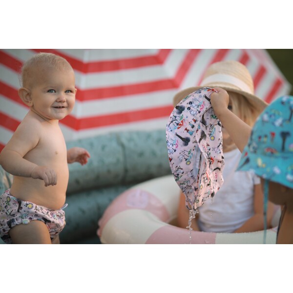 Der Stoff der Windel hat eine Beschichtungsschicht, die als Sonnenschutz dient und einen UV50+ Index erreicht. Denken Sie daran, dass die Windel andere Körperteile nicht vor starker Sonne schützt. Lassen Sie Ihr Kind niemals allein im Wasser. Das Kind sollte in einer Wasserumgebung niemals unbeaufsichtigt gelassen werden.