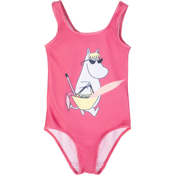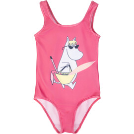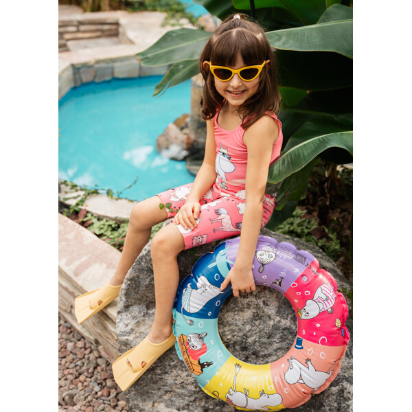 Ein schöner Mumin-Badeanzug für Kinder. Der Badeanzug ist vorne gefüttert, hoch am Rücken mit breiten und stabilen Trägern. Hergestellt aus einer elastischen, schnell trocknenden Polyester-Mischung.