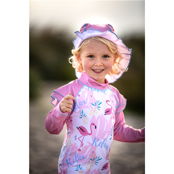 Swimpy UV-Anzug Flamingo ist ein niedliches Set in Rosa und Weiß mit Flamingos. Das Oberteil hat Rüschen an den Schultern und ist perfekt für einen Tag am Strand oder im Garten, wenn die Sonne scheint. Der UV-Anzug schützt vor UV-Strahlung und hat UPF50+. Alle UV-Produkte von Swimpy sind nach UV-Standard 801 zertifiziert, was garantiert, dass der UV-Schutz auch nach Gebrauch und Waschen erhalten bleibt. Der Anzug ist aus einem elastischen, schnell trocknenden Material gefertigt, das OKEO-tex zertifiziert und frei von schädlichen Substanzen ist.